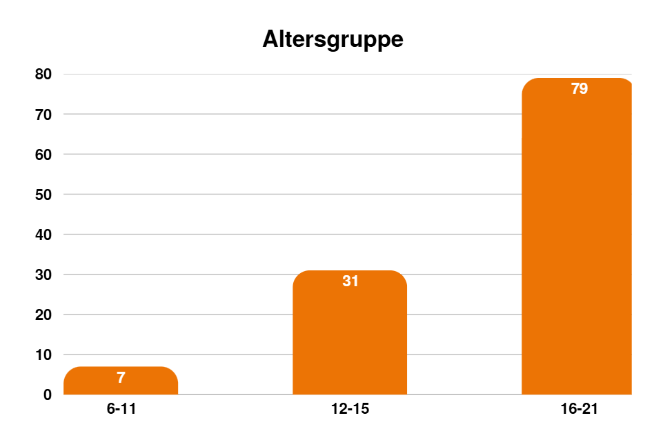 Der Großteil unserer Projektmacher*innen ist zwischen 16 und 21 Jahre alt. 79 Projekte wurden von Personen in dieser Alterskategorie durchgeführt.